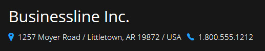 <span class="address_info"><i class="ion-ios-location"></i>1257 Moyer Road / Littletown, AR 19872 / USA</span>